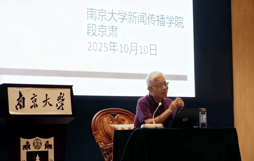 讲座尾声,段京肃以张载的“为天地立心,为生民立命”勉励新传学子:“南大人的腰杆硬不硬,不取决于赚多少钱,而在于是否产出推动社会进步的思想。”他期待青年一代在百年变局中“脚下有泥、心中有光、笔下有神”,以创新思维回应时代命题。